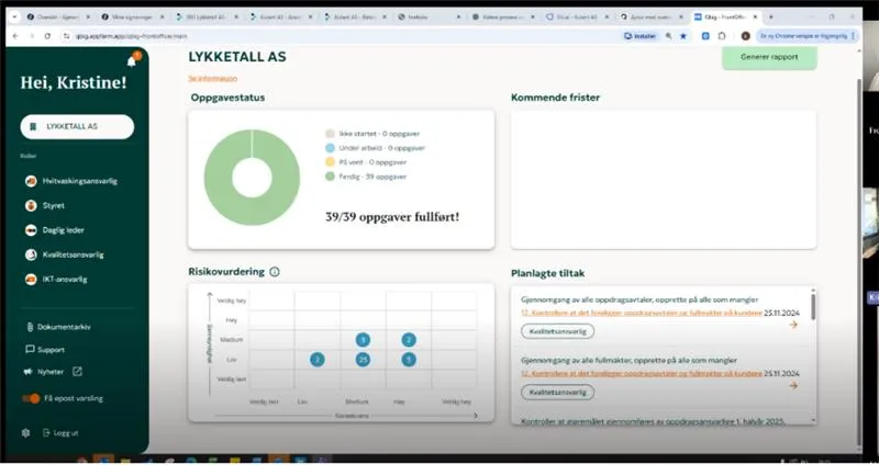 – For oss er dette en viktig milepæl. Kontrollkomiteen kom med noen presiseringer vi skal jobbe videre med, særlig knyttet til risikovurderinger, dokumentasjon og hvitvaskingsrutiner. Samtidig bekreftet de at vi har et solid fundament og gode arbeidsprosesser, sier Kristine.